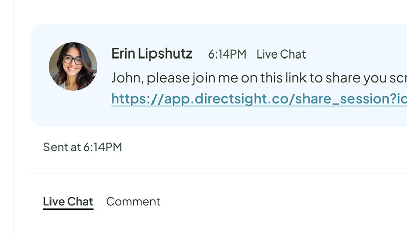 Paste the secure session URL in chat. Customer clicks and joins instantly. No downloads required.